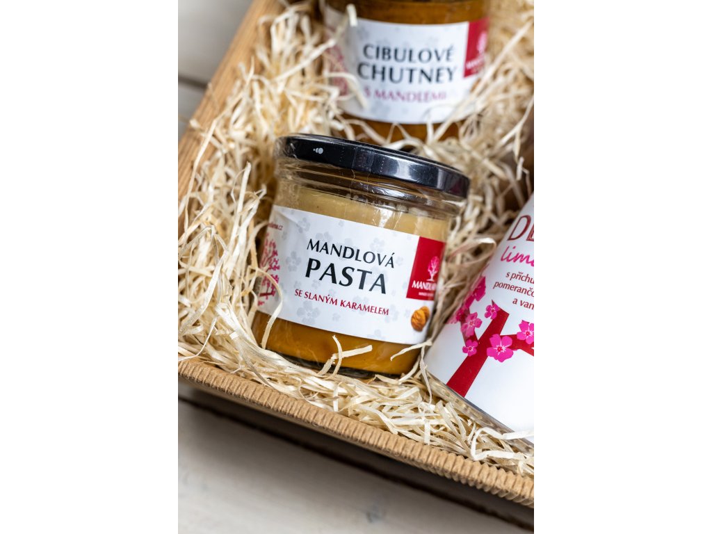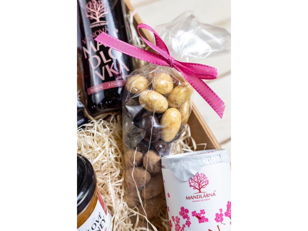 Představujeme vám dárkovou krabičku Mandlová, která je skutečným pokladem pro všechny milovníky mandlí. Tato krabička je naplněna těmi nejlepšími lahůdkami, které Hustopečská Mandlárna nabízí. Jakmile ji otevřete, budete doslova omámeni vůní rozkvetlých mandloňových sadů a chuťovými zážitky, které na vás čekají.