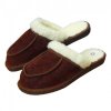 Kožené pantofle dámské s ovčí vlnou v hnědé barvě. Svršek tvoří semišová kůže, která kontrastuje se světlou ovčí vlnou uvnitř. Podrážka je pryžová tlumící s ortopedickým klenutím. Dámské semišové pantofle jsou vhodné i pro vysoký nárt.