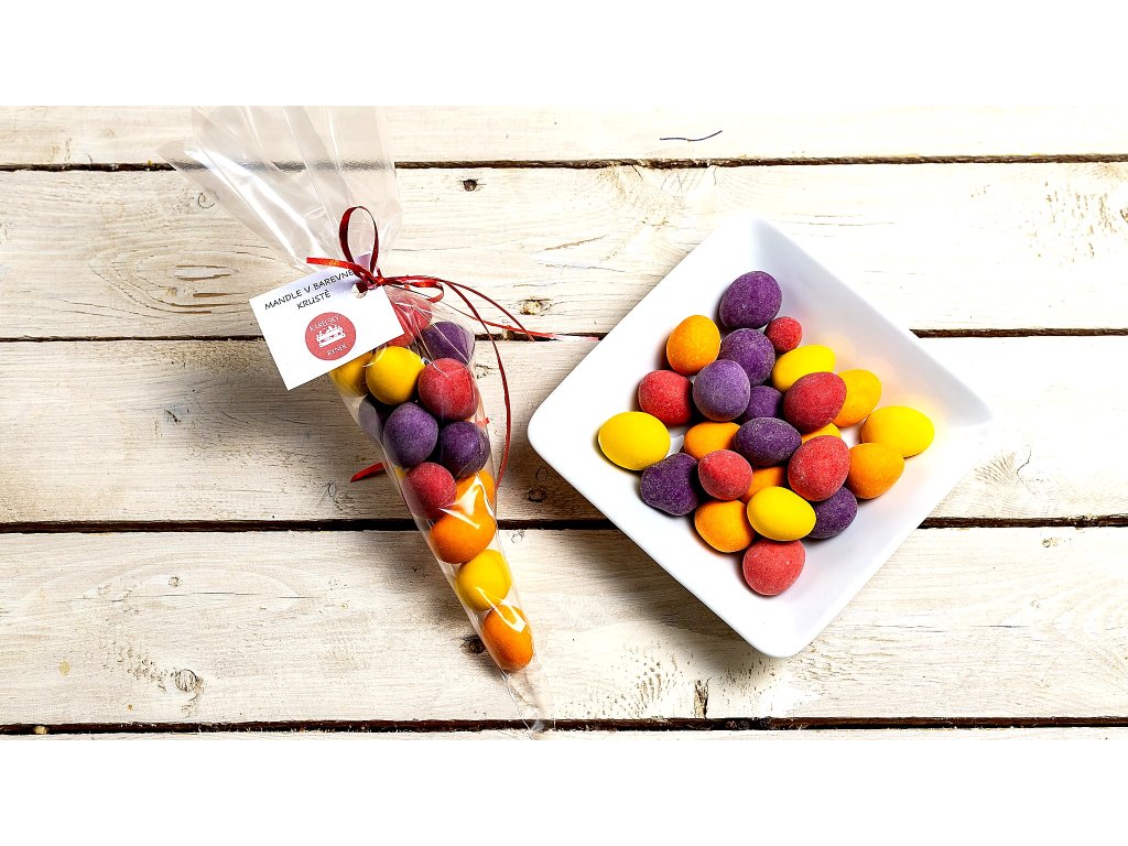 Jsou skvělou volbou pro chvíle, kdy máte chuť na něco sladkého, ale zároveň chcete sáhnout po něčem o něco zajímavějším než po běžných cukrovinkách. Díky svému veselému vzhledu se krásně hodí i na velikonoční stůl, do dárkových balíčků nebo jako drobná pozornost pro radost. Mandle v barevné krustě potěší děti i dospělé a spojují křupavý základ, čokoládovou chuť a ovocné aroma v jednom barevném soustu.