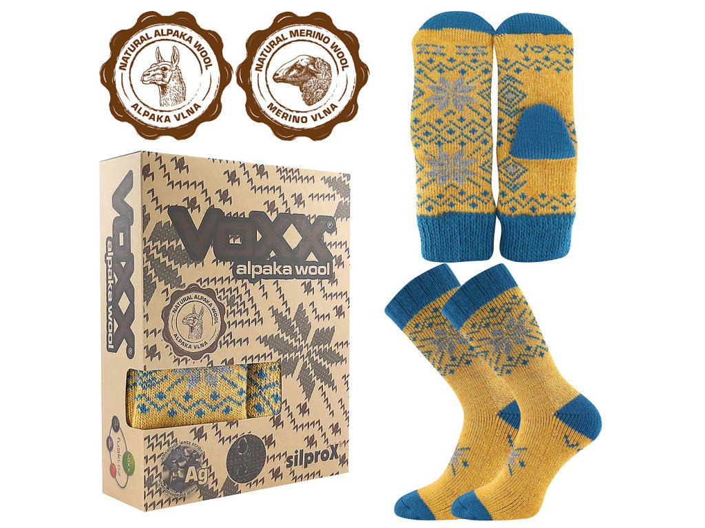 VoXX ponožky a rukavice ALTA z Merino ovčí vlny a srsti Alpaky dárkový set žlutá