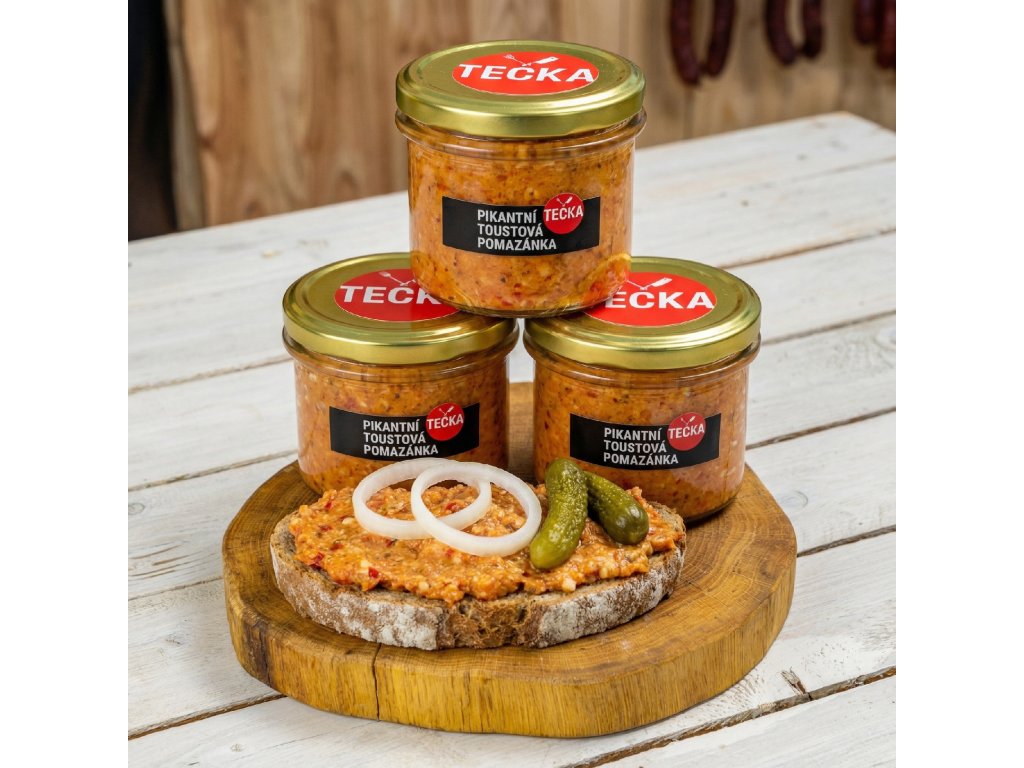 Složení: vepřové maso 35%, pitná voda, cibule, paprika červená, celer, feferonky, okurky sterilované, hořčice plnotučná, rajský protlak, kukuřičný škrob, dusitanová solící směs, česnekové plátky, koření (paprika sladká, paprika pálivá, kmín), vláknina, extrakty koření, protispékavá látka E551.