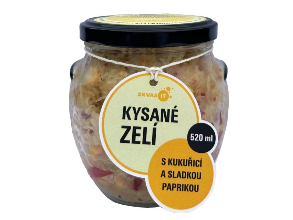 Složení: zelí bílé, kukuřice 12%, sladká paprika 12%, sůl, chilli vločky, šalvěj